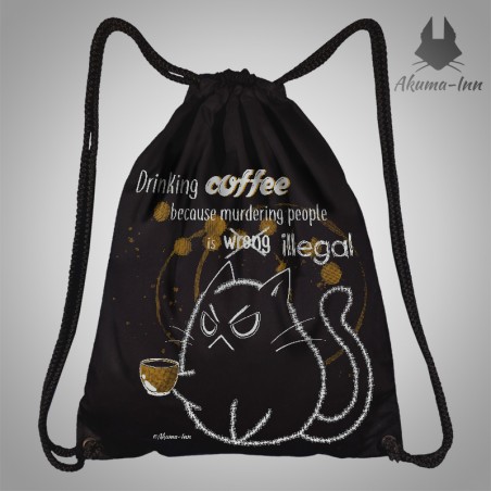 Eco-rucksack with Espresso - Drinking Coffee. Black linen, strong grey thread and soft, knitted straps combined with your favourite design mean the perfect rucksack to take with you anywhere you want! Size 36x43 cm, can be safely washed at 30 degrees after turning inside-out.