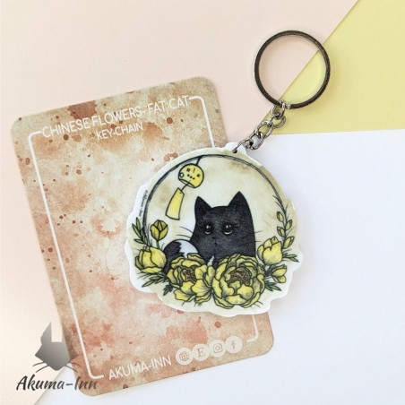 Brelok z kotką Eidą - kolekcja Chińskie kwiaty. Wykonany z utwardzonego plastiku, docinany do kształtu, druk jednostronny. Wymiary breloka około 65 x 64 mm, długość kółka razem z łańcuszkiem około 50 mm. Idealny do kluczy, torby czy plecaka dla każdego szanującego się kociarza!
