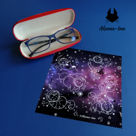 Koty w kosmosie! Ściereczka z mikrofibry o wymiarach 17x18 cm, ząbkowane krawędzie, dwustronny nadruk. Drobiazg niezbędny do przecierania okularów, telefonów i innej elektroniki, niezawodnie radzi sobie z przywracaniem powierzchni do stanu lśnienia, a w dodatku cieszy oko wybranym, ulubionym wzorem. Nadruk permanentny, można bezpiecznie prać w 30 stopniach.