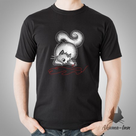 Koszulka z Czerwoną nicią przeznaczenia - kotek biały! Bawełna 100%, kolor czarny, dostępna w rozmiarach od S do 3XL. Można bezpiecznie prać na lewej stronie w 30 stopniach, a koszulka pozostanie tak samo zachwycająca jak pierwszego dnia po zakupie!