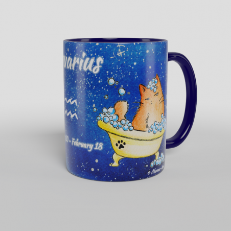 Jedyny na świecie, unikatowy i stworzony w całości przez artystyczne dusze Akuma-Inn kubeczek z Aquarius (Wodnik) z kolekcji Zodiaki. Wykonany z wysokiej jakości ceramiki o dodatkowej powłoce, pojemność 330 ml, wysokość około 9,5 cm, ma granatowe uszko i wnętrze i tylko czeka, żeby trafić w Twoje ręce i towarzyszyć Ci przy każdej porannej kawie i ulubionej herbacie! :)