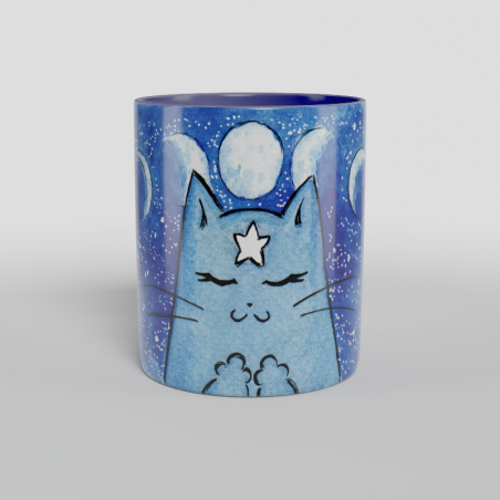 Jedyny na świecie, unikatowy i stworzony w całości przez artystyczne dusze Akuma-Inn kubeczek "Księżycowy" z fazami księżyca. Wykonany z wysokiej jakości ceramiki o dodatkowej powłoce, pojemność 330 ml, wysokość około 9,5 cm, ma granatowe uszko i wnętrze i tylko czeka, żeby trafić w Twoje ręce i towarzyszyć Ci przy każdej porannej kawie i ulubionej herbacie! :)