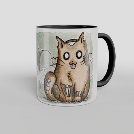 Jedyny na świecie, unikatowy i stworzony w całości przez artystyczne dusze Akuma-Inn kubeczek z Zombie z kolekcji Creepy Kotów, ponieważ kotów nigdy dość! Wykonany z wysokiej jakości ceramiki o dodatkowej powłoce, pojemność 330 ml, wysokość około 9,5 cm, ma czarne uszko i wnętrze i tylko czeka, żeby trafić w Twoje ręce i towarzyszyć Ci przy każdej porannej kawie i ulubionej herbacie! :)