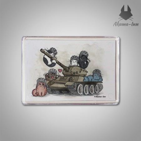 Magnes z kocimi czołgistami! Magnes akrylowy o wymiarach 97 x 67 mm. Trzyma się lodówki jak przyklejony! Idealnie pasuje na ozdobę albo do przypinania przypominajek, list zakupów i innych ważnych informacji.