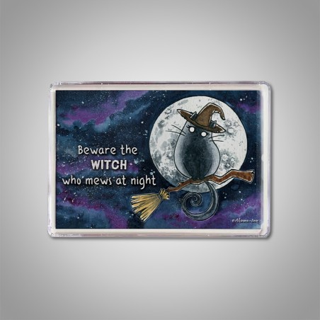 Magnes Spooky Wiedźma! Magnes akrylowy o wymiarach 97 x 67 mm. Trzyma się lodówki jak przyklejony! Idealnie pasuje na ozdobę albo do przypinania przypominajek, list zakupów i innych ważnych informacji.