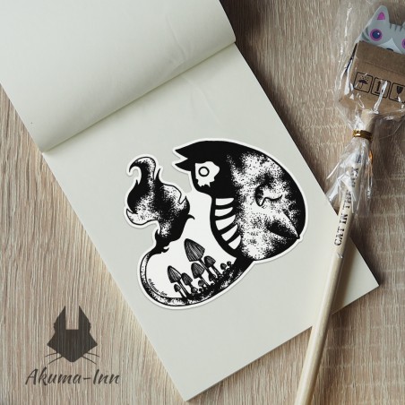 Naklejka o wymiarach około 6,4x5,6 cm. Wysokiej jakości druk na specjalistycznym błyszczącym papierze naklejkowym. Kolory są trwałe i żywe, a klej tak mocny, że Twoja naklejka przeżyje nawet apokalipsę (dlatego też lepiej dobrze przemyśl, gdzie ją nakleić, bo prawdopodobnie zostanie tam już na zawsze).