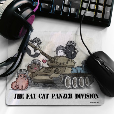 Podkładka pod mysz kocią dywizją pancerną. Z Grubymi Kotami przy komputerze będzie raźniej pracować, grać, bawić się i uczyć :) Podkładka o wymiarach 19 x 24,5 cm, grubość 4 mm, nadruk permanentny i niespieralny, gumowany czarny podkład na spodniej stronie i unikalna grafika produkcji artystycznych dusz tworzących markę Akuma-Inn – to wszystko sprawia, że takiej podkładki pod mysz po prostu nie da się znaleźć nigdzie indziej!