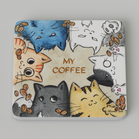 Podkładka pod kubek z kawą - doskonała dla każdego wielbiciela kawy (i Grubych Kotów). Wysokiej jakości nadruk na PCV, wymiary 10x10 cm z zaokrąglonymi rogami, 5 mm wysokości. Żaden kubek jej niestraszny i ochroni każdy blat przed kolejnymi wypalonymi kółkami!