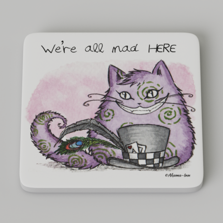 Podkładka pod kubek z Kotem Cheshire z kolekcji Creepy kotków. Wysokiej jakości nadruk na PCV, wymiary 10x10 cm z zaokrąglonymi rogami, 5 mm wysokości. Żaden kubek jej niestraszny i ochroni każdy blat przed kolejnymi wypalonymi kółkami!