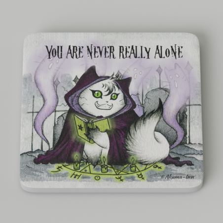 Podkładka pod kubek z kocim nekromantą. Wysokiej jakości nadruk na PCV, wymiary 10x10 cm z zaokrąglonymi rogami, 5 mm wysokości. Żaden kubek jej niestraszny i ochroni każdy blat przed kolejnymi wypalonymi kółkami!