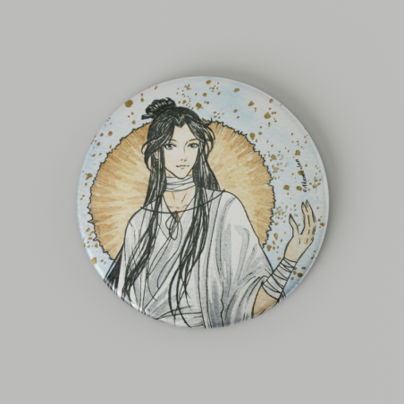 Przypinka z Xie Lian z "Tian Guan Ci Fu". Dostępna w rozmiarze 59 mm. Wysokiej jakości wydruk na papierze fotograficznym glossy w połączeniu z mocną, stalową konstrukcją komponentów tworzy ultimate Akumową przypinkę, którą można z dumą nosić i rozgłaszać światu swoje uwielbienie do mangi i anime.
