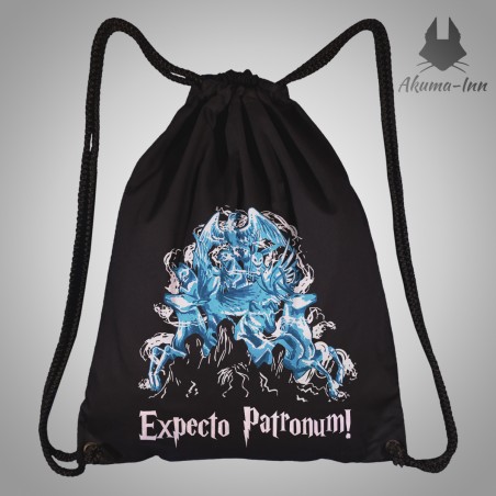Eko-worek z motywem Patronusów z "Harry'ego Pottera". Czarne płótno o gęstym splocie, mocna siwa nić i miękkie, plecione paski w połączniu z wybranym wzorem to synonim ideału! Worek ma wymiary 36x43 cm, jest ściągany u góry, można bez przeszkód prać go na lewej stronie w 30 stopniach.